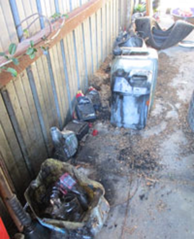 L’area dove sono stati trovati i rifiuti era priva di impermeabilizzazione ed in una porzione della stessa si rilevava la presenza di abbruciamento di rifiuti legnosi e la presenza di alcuni contenitori in plastica contenenti oli esausti con evidenti sversamenti a terra, oltre che veicoli fuori uso (incidentati ed in evidente stato di abbandono), un escavatore, un compressore, parti di auto.