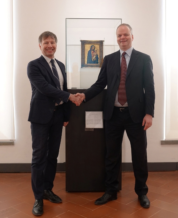 L’incontro è stato anche occasione per riparlare dei due dipinti di Albrecht Altdorfer con Storie di San Floriano, dalla collezione Spannocchi di Siena, dal 1913 in deposito agli Uffizi. Già dal 2018 essi sono esposti a Santa Maria della Scala. Nell’incontro di questa mattina, il Direttore Schmidt ha ribadito che le due opere, di proprietà della Provincia di Siena, ritorneranno a far parte della grande impresa di ricomposizione della storica collezione senese, su impulso del dottor Alessandro Bagnoli della Soprintendenza senese, e di concerto con il Soprintendente Andrea Muzzi e del direttore del Polo Museale Toscano Stefano Casciu. Con questa restituzione gli Uffizi contribuiscono a un’operazione non solo virtuosa, ma di spettacolare valore storico: la collezione Spannocchi può tornare a rivivere nella città cui appartenne fin dal 1709.