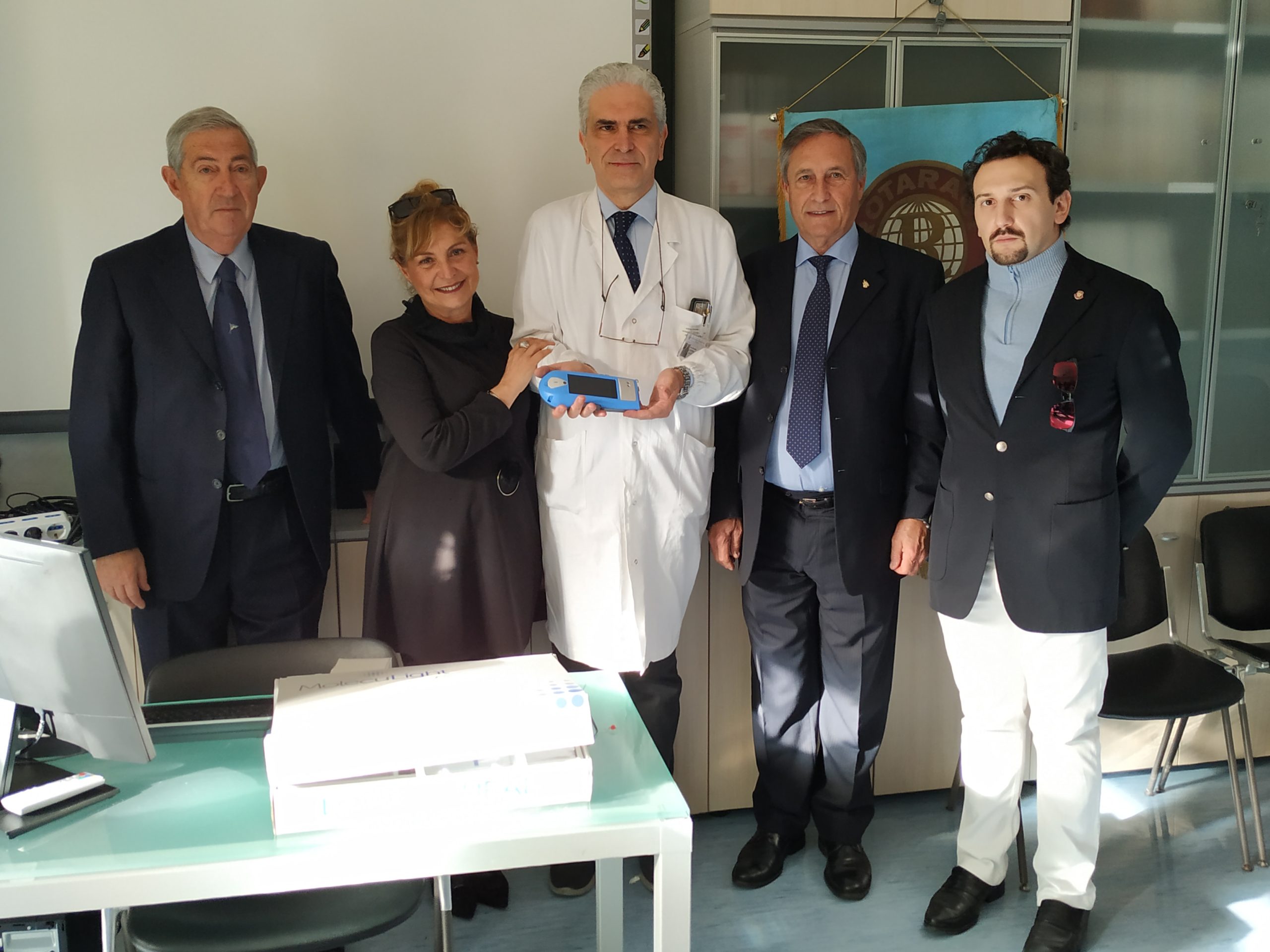 Nella biblioteca dell’edificio 3 di Cisanello si è svolta stamani una piccola cerimonia per consegnare al dottor Antonio Di Lonardo, direttore del Centro ustioni, un apparecchio (moleculight) che, tramite fluorescenza, individua in tempo reale la presenza di batteri sulle lesioni.