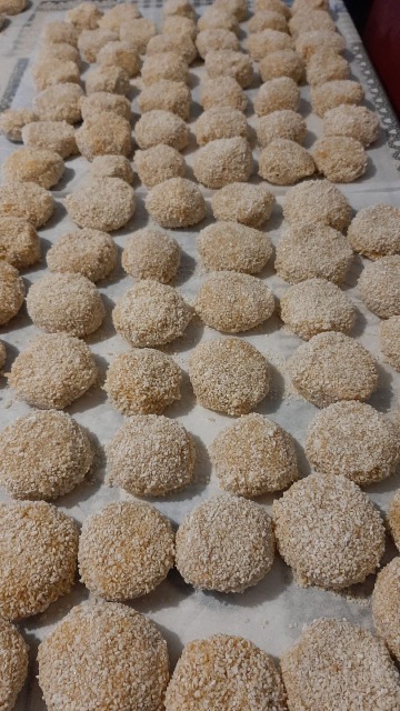 Frullare tutto nel mixer tranne le patate che vanno schiacciate con lo schiacciapatate. Mescolare tutto con cura fino ad ottenere un composto omogeneo e liscio. Aggiustare di sale. Fate delle palline piccole, il consiglio è di schiacciarle leggermente per facilitare la cottura. Passate le palline nella farina avendo cura di togliere quella in eccesso, poi passatele nell’uovo e in fine nel pangrattato. Per i golosi o per un antipasto speciale, consiglio di ripetere il passaggio farina – uovo per due volte prima di passare al pangrattato. Nel pangrattato potete mettere conflex sbriciolati per dare una croccantezza speciale alle polpette. Friggete tutto in abbondante olio (arachidi) e abbiate cura di sgocciolare su un foglio di carta assorbente le polpette. È buona abitudine, per avere un fritto asciutto, di mettere e togliere piccole quantità alla volta per mantenere l’olio ad una temperatura costante. Per evitare cibi pronti o crocchette da supermercato le polpette si possono congelare per poi friggerle in pochi minuti ancora congelate.