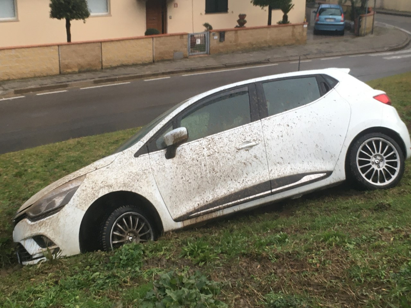 Questa mattina una macchina è stata ritrovata nel giardino del Parco Corsini a Fucecchio. Il mezzo si trovava dentro al fossato laterale del giardino.