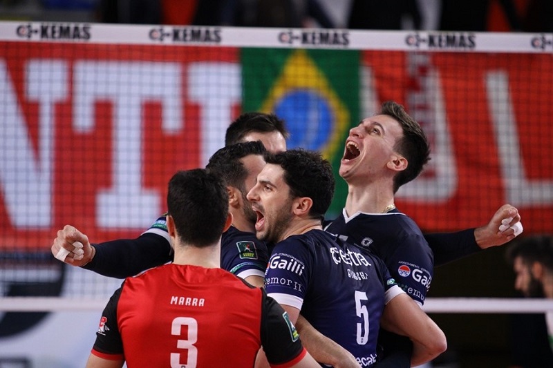 Quarto set Siena parte forte e si porta sul +3 (2-5) con Romanò che martella. Bene anche Gitto (3-6). Break locale, e ora il set è nuovamente in parità. Mariano e Gitto non ci stanno e dopo una splendida difesa di Falaschi su Padura Diaz è ancora Gitto a colpire (11-13). Santa Croce non molla, Acquarone trova con precisione l’ace che consente a Santa Croce di mettere la testa avanti (17-16), ci pensa Romanò a pareggiare. Tre muri di Siena, realizzati da Romanò, Zamagni e Milan, ribaltano di nuovo tutto (17-20). Romanò va a segno dopo la ricezione sbagliata da Santa Croce (17-21). Un’altra splendida murata di Zamagni avvicina Siena a quota 25. Romanò in diagonale è perfetto. Ma la Kemas Lamipel recupera e quando l’attacco di Mariano è fuori di poco è parità (23-23). Padura Diaz realizza l’ace che dà il set point ai suoi (24-23), poi sbaglia (24-24). Romanò è superlativo ai vantaggi, ed è lui a guidare Siena alla vittoria (26-28).