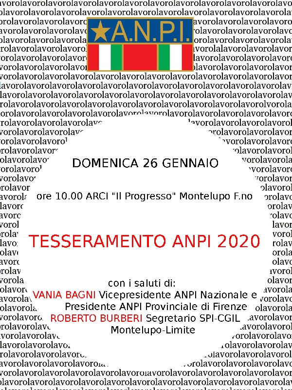 La sezione ANPI “XXV APRILE” di Montelupo Fiorentino organizza per domenica 26 gennaio, dalle ore 10.00 la giornata del tesseramento.