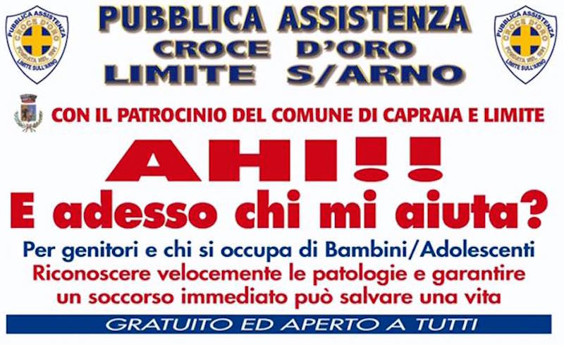 "Ahi! E adesso chi mi aiuta?". Dal 24 Gennaio arriva a Limite sull’Arno presso la sede della Pubblica Assistenza una serie di quattro incontri dedicati ai genitori e a chiunque si occupa di bambini. Gli incontri, organizzati nell’ambito del progetto cittadino attivo, saranno tenuti da medici e specialisti dei vari settori che saranno trattati. La partecipazione è gratuita e aperta a tutti.