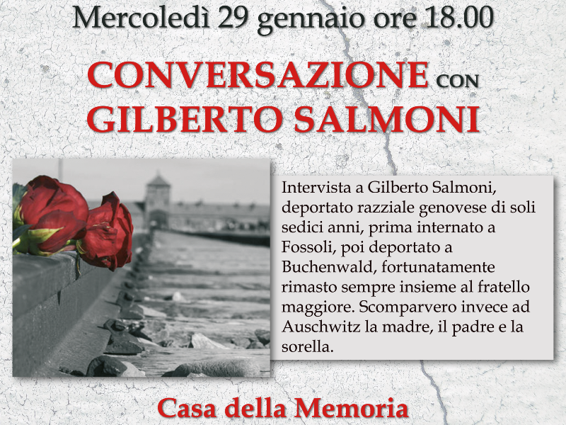 In occasione delle celebrazioni per il Giorno della Memoria 2020, la Biblioteca comunale “Renato Fucini” di Empoli, in collaborazione con l’ANED Associazione Nazionale Ex-Deportati, ospita alla Casa della Memoria, in Via Livornese, mercoledì 29 gennaio 2020, alle 18, Gilberto Salmoni, presidente di Aned Genova.