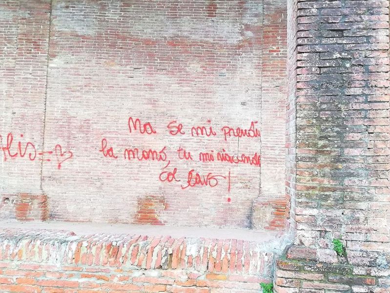 Già in più occasioni le logge hanno subito atti vandalici e scritte varie, sempre rimosse e ripulite dal Comune. Negli ultimi giorni però è apparso un altro graffito che riprende il verso di una canzone estiva, che ha marchiato di tinta rossa gli storici muri di piazza Dante, come raffigura la foto pubblicata su Facebook da Pilade Cantini, ex assessore e adesso collaboratore del Sindaco.