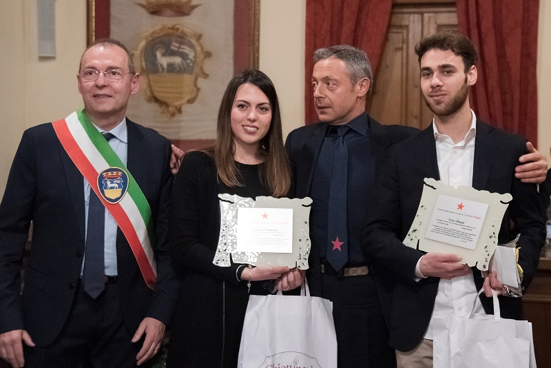 Si è tenuta ieri sera, nella sala del consiglio comunale di Greve in Chianti, la cerimonia di consegna della doppia borsa di studio del valore di 700 euro l’una, la prima conferita dal sindaco Paolo Sottani, la seconda dal presidente del Rotary San Casciano Chianti Leandro Galletti che ha arricchito il suo riconoscimento con ulteriori omaggi, anche in denaro. Il conferimento è stato accompagnato dalla consegna ai giovani borsisti di una targa in ricordo di Lucrezia da parte del padre Fabrizio Borghi.