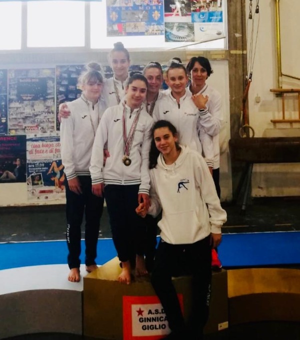 Nella fascia junior 3 ottiene il 3’ posto all around Alice Mannini al suo esordio in questo Campionato.Buona gara anche se un po’ di emozione si è fatta sentire. Per lei arrivano anche una medaglia di bronzo al corpo libero e due argenti alla trave e al volteggio. Senia Buti reduce da una piccola distorsione ad una caviglia di qualche giorno prima si presenta in gara con soltanto le parallele, ottenendo la medaglia di bronzo.