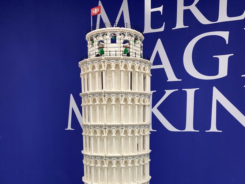 La costruzione di questo modello - alto più di 2 metri, composto da 38.000 mattoncini LEGO e da oltre 70 elementi diversi - ha coinvolto un designer e tre costruttori per un totale di ben 321 ore di lavoro. La principale sfida, nella sua progettazione e poi nella costruzione, è stata sicuramente quella di ricreare la pendenza della “vera” Torre di Pisa; a tal fine è stata utilizzata una struttura di ferro che supporta l’intera torre e la mantiene inclinata di 5 gradi.