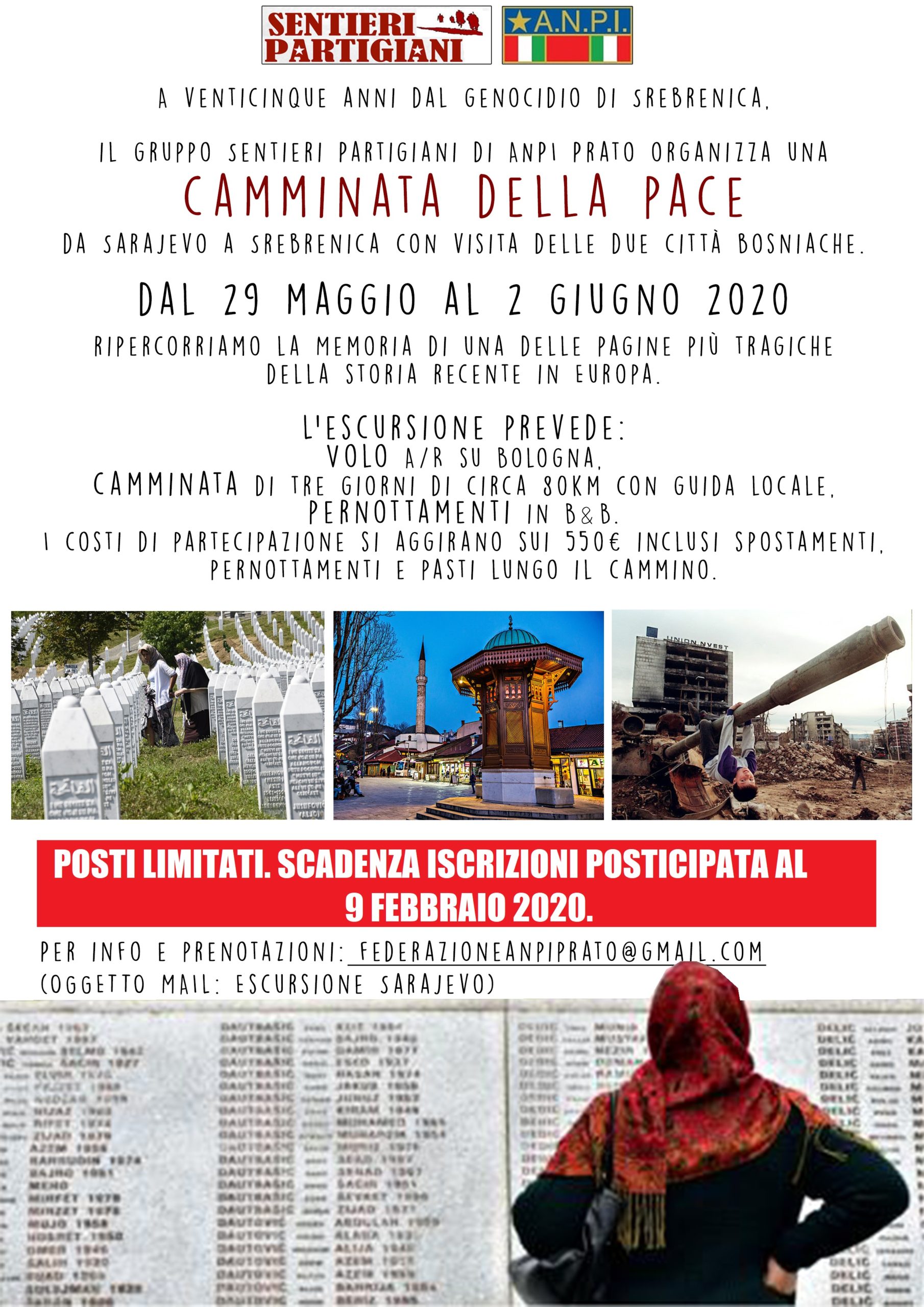 A 25 anni dal genocidio di Srebrenica, il gruppo trekking ‘Sentieri Partigiani’ di ANPI Prato organizza una CAMMINATA DELLA PACE da Sarajevo a Srebrenica, con visita delle due città bosniache.