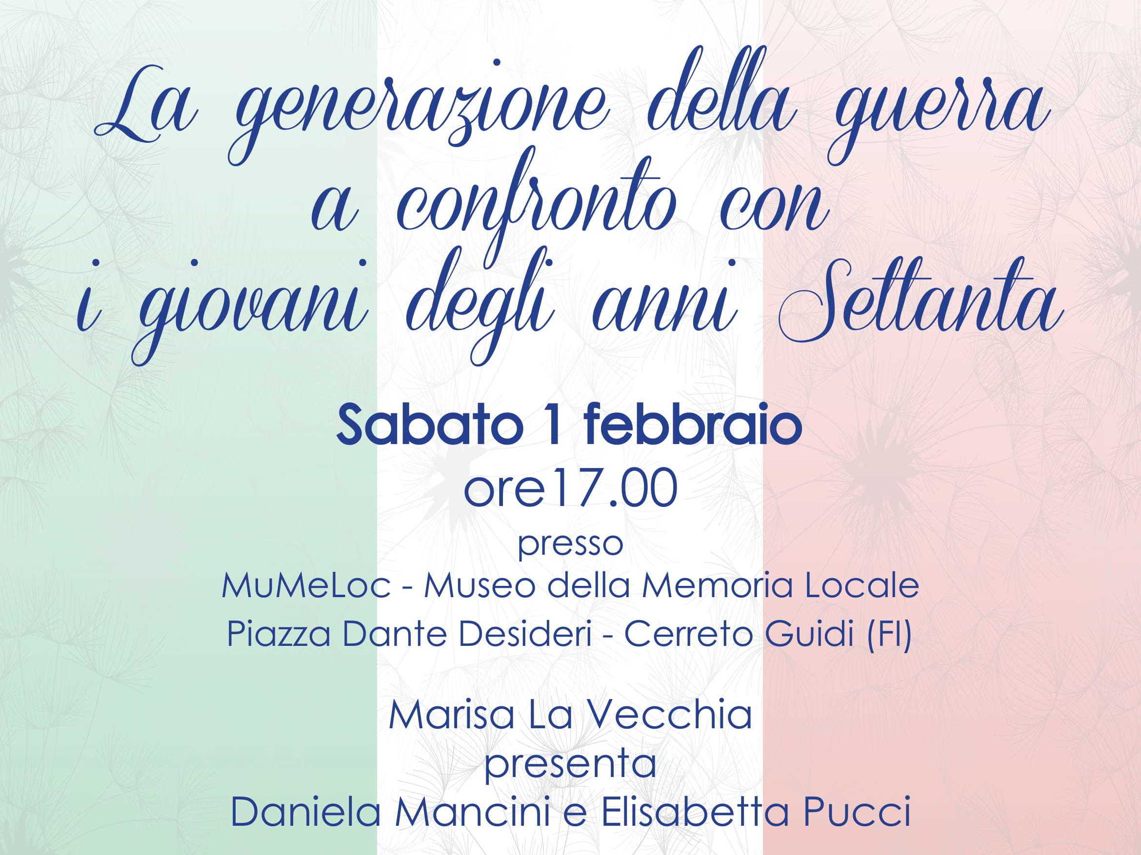 A Cerreto Guidi il Giorno della Memoria viene celebrato alcuni giorni dopo rispetto alla data canonica del 27 gennaio. L’appuntamento con “La generazione della guerra a confronto con i giovani degli anni Settanta”, è infatti previsto per sabato 1 febbraio alle ore 17,00 al Museo della Memoria Locale.
