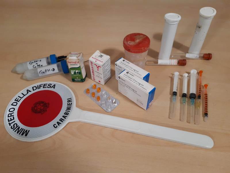 In uno dei locali adibiti all'allevamento erano inseriti all'interno di un frigorifero numerosi farmaci, sia ad uso veterinario che umano, fra i quali alcuni ad effetto dopante.