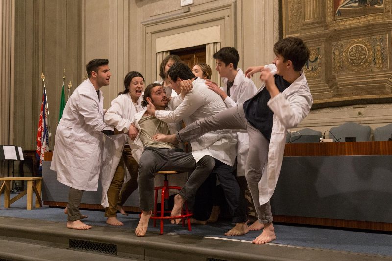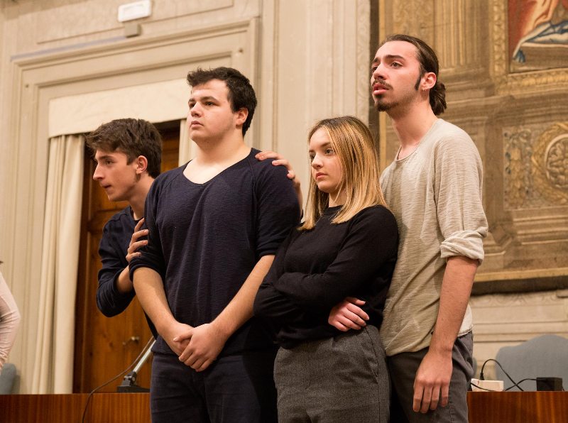 Il teatro con gli studenti del Laboratorio Teatrale dell’I.I.S. “G. Ferraris - F. Brunelleschi” di Empoli, accompagnati dalle docenti Cristina Nesi, Silvia Desideri, Laura Moroni e Teresa Zuffanelli, che hanno messo in scena la performance Primo Levi. Il chimico, il testimone, lo scrittore. “Una differenza percettibile”, regia M. Simona Peruzzi.