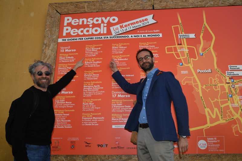 Come stanno andando le cose? Cosa sta succedendo? «Pensavo Peccioli – spiega il direttore Luca Sofri – è un cauto approccio per capirlo, preoccupato ma non sfiduciato, e per guardare il mondo intero da una dimensione familiare e tangibile come quella di una piccola comunità, di un luogo concreto. Pensavo Peccioli è l’idea che quello che capita al mondo capiti a ognuno di noi dovunque si trova, e viceversa. Ed è l’idea che comprendere le cose e informarsi sia il primo modo di migliorarle. Ed è insomma tre giorni di incontri con persone che osservano e raccontano le cose, che provano a capirle e spiegarle, ospiti di una cittadina che è attenta da decenni a quello che succede e a come farne bene comune, per sé e per gli altri. Ne abbiamo, da dire, e da ascoltare».