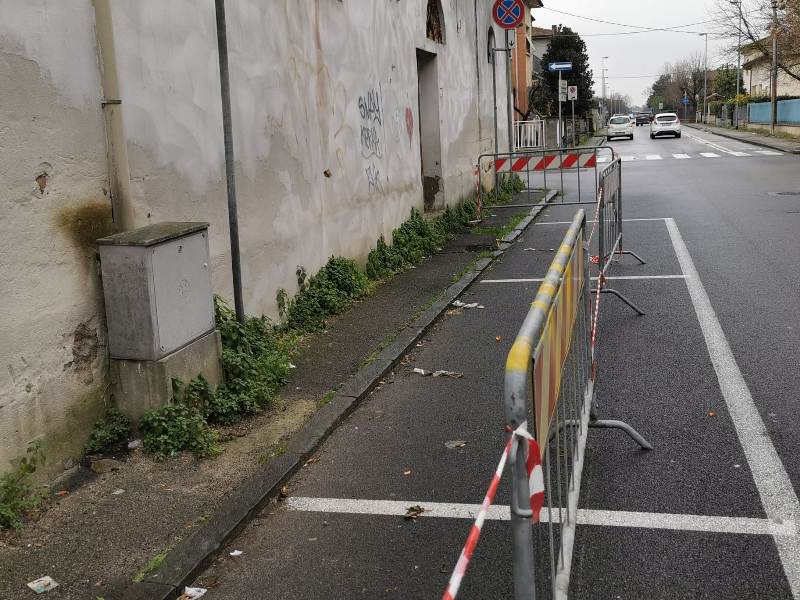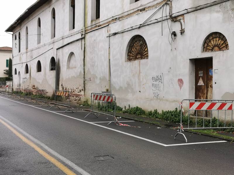 Dal 4 gennaio 2020 in via Cavour sul lato sinistro in prossimità di via San Tommaso a Santa Croce sull'Arno sono state collocate 10 transenne e nastro segnaletico di pericolo da parte del comune, occupando 8 stalli del parcheggio utilizzato dai residenti della zona. All’inizio di gennaio sono stati posizionati dei coni stradali da cantiere e successivamente sostituiti dalle transenne. Probabilmente la ex conceria ha una gronda in pessimo stato di manutenzione e potrebbe presentare un imminente rischio di caduta di materiale. Il 9 gennaio ho scritto una pec all’Assessore ai lavori pubblici Daniele Bocciardi, al Dirigente ai Lavori Pubblici e al Comandante la Polizia Municipale per avere delle informazioni del perché sono state posizionate le transenne: nessuno mi ha risposto.