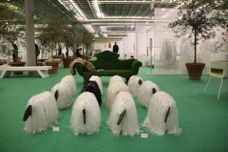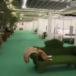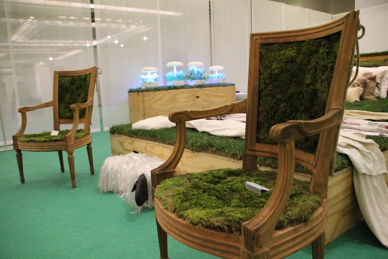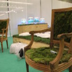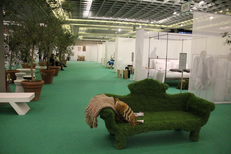 "Quando mi hanno ingaggiato avevo appena visitato il tepidario del Giardino dell'Orticultura. Ho voluto così interpretare l'esigenza green che il mercato adesso sta richiedendo, ricreando un'operazione di sostenibilità all'interno di un ipotetico tepidario all'interno della Fortezza da Basso. Anna Monti ha ricamato su tele di poliestere recuperato il David, la Cupola del Brunelleschi e la Signoria. Il bianco è in contrasto con il verde, il tepidario, intitolato Green Hub è un salotto nel salone che ospita le eccellenze green nel mondo della biancheria casa."