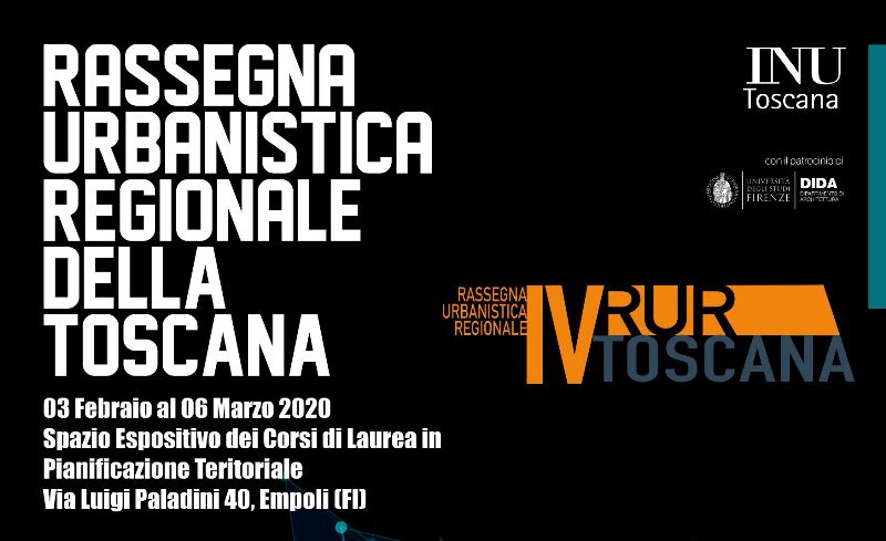 La IV Rassegna urbanistica regionale della Toscana torna in mostra (di nuovo). Dopo il successo della manifestazione organizzata a ottobre da INU Toscana, presso la Palazzina Reale della stazione di Santa Maria Novella, con la collaborazione della Fondazione Architetti Firenze e il patrocino del Dipartimento di Architettura di Firenze, e la mostra organizzata a novembre presso il Dipartimento di Architettura di Firenze i ca. 50 pannelli della RUR, presentati da 26 espositori (enti pubblici, professionisti, università), tornano in mostra a documentare lo stato dell'arte della pianificazione e progettazione urbanistica e territoriale in Toscana, da lunedì 3 Febbraio a venerdì 6 marzo 2020 nello spazio espositivo dei corsi di laurea in Pianificazione Territoriale, in via Luigi Paladini 40 ad Empoli.