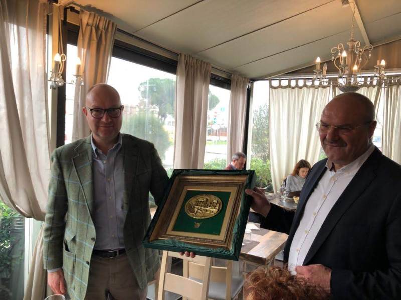 Durante il pranzo Popov ha consegnato all'avv. Busoni un quadro dove viene rappresentato l'anfiteatro romano di Plovdiv ringraziandolo dell'accoglienza.