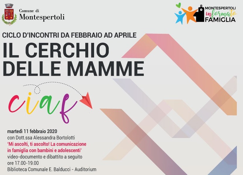 L'Assessorato alle Politiche per le famiglie di Montespertoli ha organizzato un nuovo ciclo d'incontri dal nome 'Il Cerchio delle Mamme' che consiste in cinque incontri dedicati ai genitori, alla cura e alla relazione con i figli.