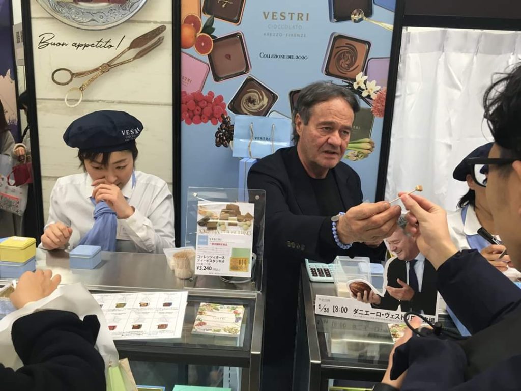 Pochi giorni a San Valentino e in Giappone reclamano Vestri. In questo febbraio 2020, sono 11 anni che nel Paese del Sol Levante si apprezzano le creazioni dell'azienda aretina di cioccolato. E la domanda è in continua crescita. Per festeggiare la ricorrenza e partecipare a fiere e seminari in vista del giorno più romantico dell'anno, Danielo Vestri ha intrapreso un nuovo tour del Giappone.