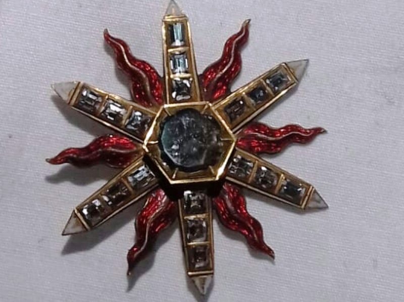 Il gioiello, incastonato nella pittura murale «nel fine del raggio che spira lo Spirito S., e riesce vicino alla spalla destra della Vergine» (Tozzi 1765), fu donato da Cristina di Lorena attorno al 1605. Misura sei centimetri di diametro e si presenta sotto forma di stella in oro con raggi fiammeggianti, posti arretrati, in smalto rosso, che si alternano ad altri lanceolati, posti in primo piano, definiti ciascuno da un pavé di diamanti, il tutto segnato al centro da un grosso diamante esagonale sfaccettato. Sul verso la stella si presenta ugualmente finita e smaltata di bianco (sui raggi lanceolati) e di rosso (sui dardi fiammeggianti), in ambedue i casi vedendo risparmiata la porzione mediana in modo da definire una nervatura centrale in oro, nel primo caso lanceolata, nel secondo fiammeggiante.