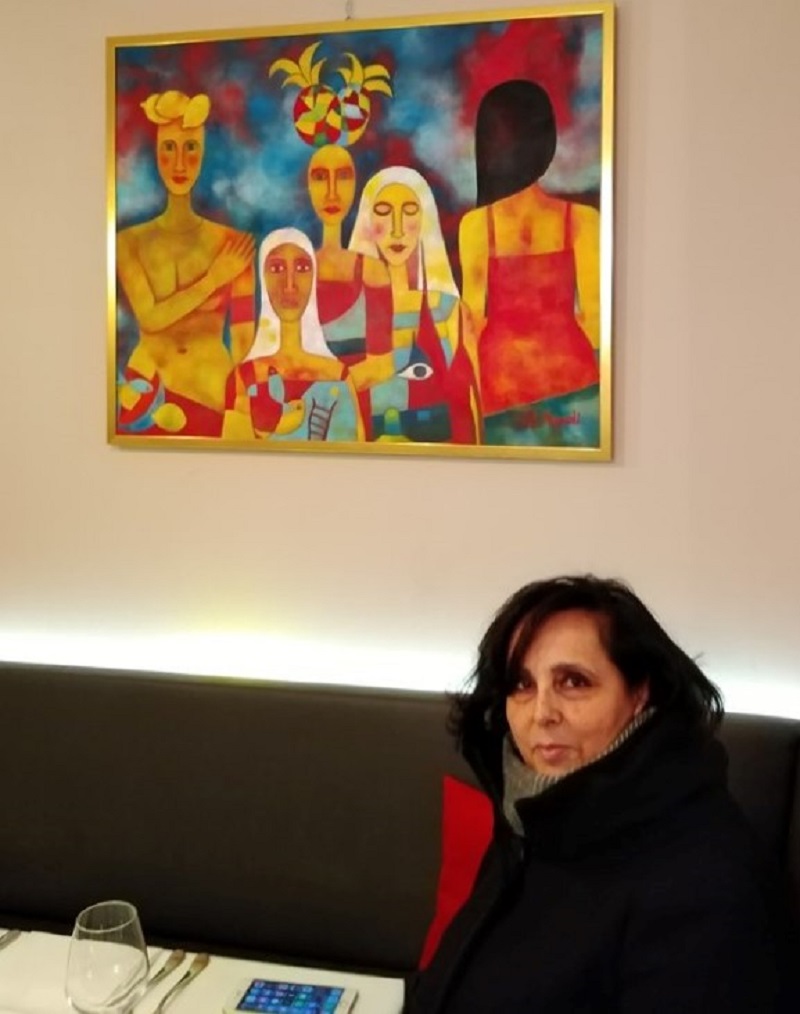 “La mostra che andiamo qui presentando sarà in esposizione presso la sala del nostro Ristorante fino al 15 Marzo 2020. Essa si compone di 12 opere: 7 delle quali appartenenti alla collezione dedicata al "Cantico dei Cantici": poema millenario inserito nelle Sacre Scritture; 3 alla serie denominata "Soggetti Vari"; le ultime due infine fanno parte della raccolta intitolata "Autobiografico". Tutti i dipinti sono realizzati dall'artista con pitture ad olio che ella stessa ricava a partire da pigmenti naturali. I colori, così splendidamente inverosimili ed esuberanti, sono considerati da Anna veri e propri esseri viventi: essi palpitano, odorano, riscaldano, emanano vibrazioni magiche magnetiche; sono i colori dei sogni, dell'immaginario che non ha confini ne spiegazioni; essi sono altrettanto se non più importanti delle figure a cui danno luce ed emozione: le persone le cose, gli animali, anche loro concepiti in chiave onirica, sebbene legati a ricordi e vissuti autentici, galleggiano, ruotano, volteggiano, levitano, si sovrappongono leggeri senza gravità nello spazio delineato dalla cornice, insensibili alla prospettiva e alle leggi che dominano il mondo reale. Occhi grandi sgranati, insonni che chiamano e attirano a se l'osservatore con frequenze sotterranee, irresistibili di sirene; storie simili e differenti che si respirano addosso da dimensioni molteplici; immagini che si struggono e colano in alcove di quiete e di caos e si mescolano senza mai toccarsi restituendo sentimenti di sovraccarica incompiutezza e allo stesso tempo di paradossale frammentata esaustività; e non è più importante cosa è prima e cosa è dopo e non c'è un sopra e non c'è un sotto. Sono sogni dentro ad altri sogni senza legami apparenti. Sono scorci , lampi, sulla complessa ed irrazionale attività della mente dell'uomo, che l'artista qui indubbiamente dimostra di saper ascoltare e cogliere con sensibile, non comune, ispirata destrezza (F.M)”