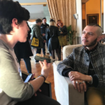 Quattro ragazzi stanno seguendo la manifestazione con interviste, riprese, dirette Instagram e articoli