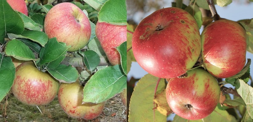 Didascalia foto: a sinistra la mela Rotella, a destra la mela Casciana