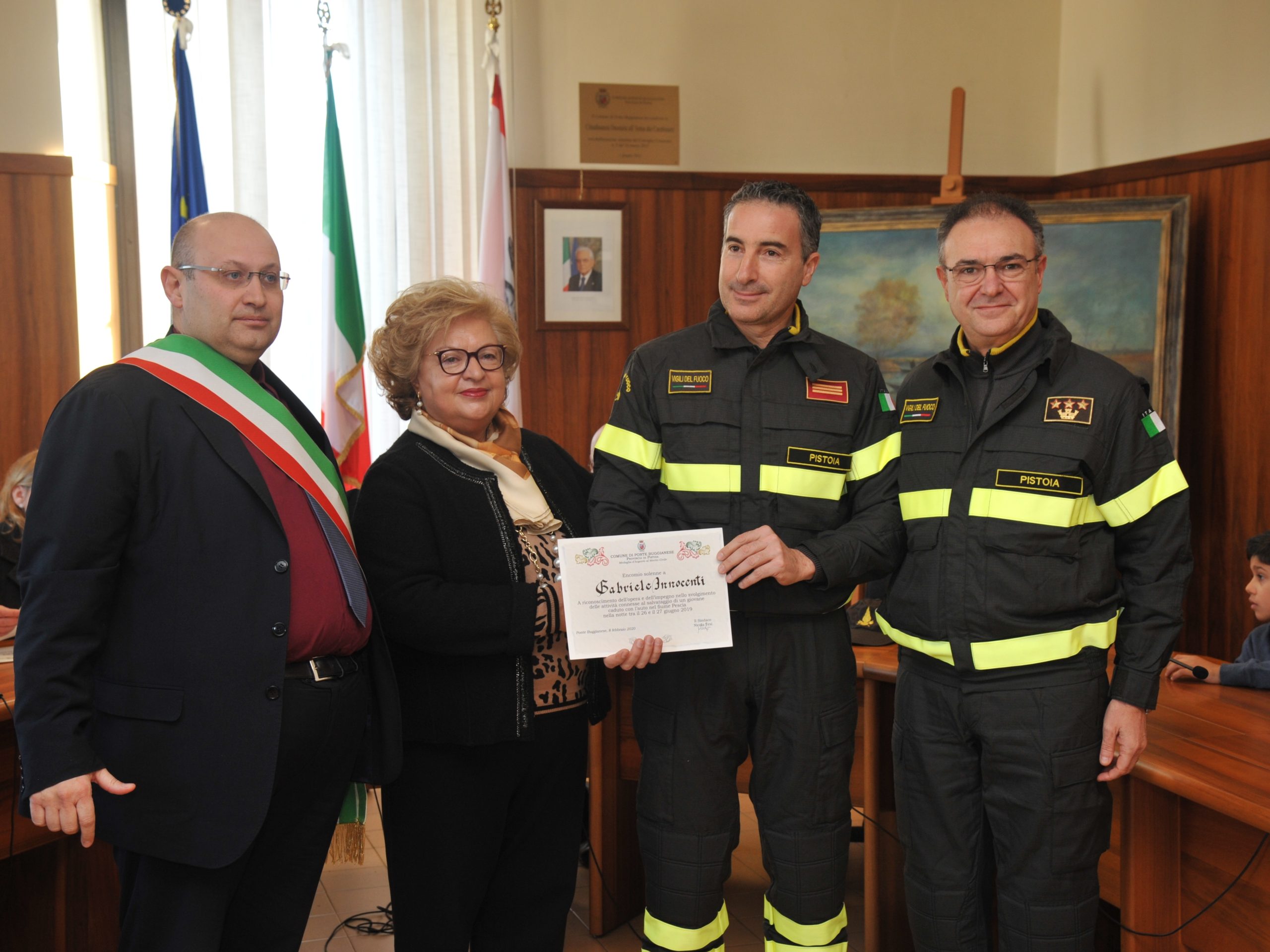 Questa mattina, 8 febbraio, alla presenza del Prefetto di Pistoia Dott.sa Emilia Zarrilli, del Comandante Provinciale dei vigili del Fuoco Ing. Luigi Gentiluomo, del Comandante della Polizia Municipale Claudio Miniati e di tutto il Consiglio Comunale, si è provveduto alla consegna degli encomi per i fatti occorsi nella notte tra il 26 e 27 giugno e quello del 22 dicembre (Qui).
