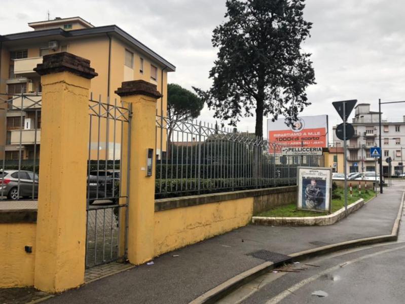 Ho verificato in tarda mattinata che lo striscione fosse effettivamente lì, dove era stato fotografato. Non c'era. Probabilmente alcuni cittadini l'hanno tolto molto velocemente dopo averlo visto, perché nessuno mi ha detto di averlo notato stamattina. Probabilmente è durato appena appena il tempo per fotografarlo.