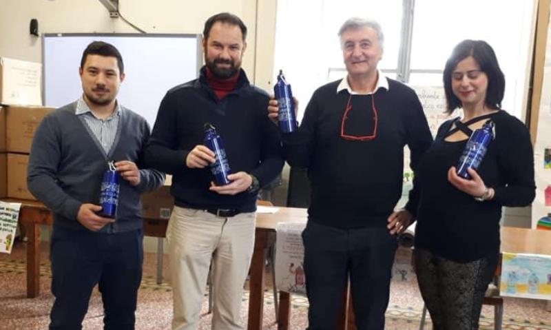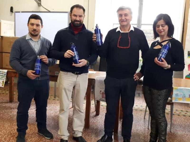 La prima tappa si è svolta ieri presso il plesso scolastico di viale Roosevelt. Oggi, mercoledì 12 febbraio, sono state consegnate le borracce alla “Tilli”, mentre venerdì 14 sarà la volta del plesso scolastico di viale Di Vittorio.