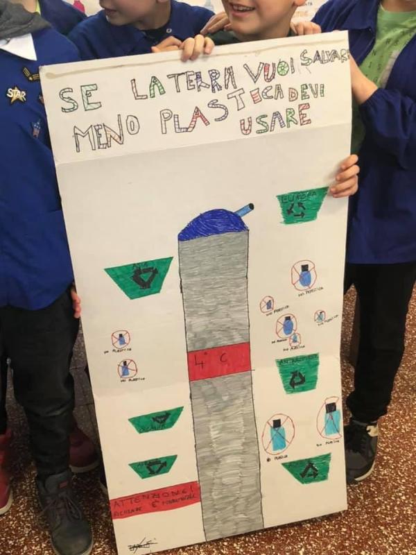 Il progetto “Acqua Buona” va nella direzione di una scuola “plastic free”, per diffondere abitudini virtuose e nel contempo rendere responsabili le nuove generazioni intorno a una sfida per la quale la posta in gioco è il loro stesso futuro. La consegna di una borraccia gratuita a ciascun alunno si propone di incentivare il consumo di acqua di rubinetto al posto di quella in bottiglia (la classica bottiglietta monouso in plastica da mezzo litro) con un risparmio annuo stimato di oltre 22 quintali di plastica e una riduzione di emissioni di oltre 52 quintali di anidride carbonica.