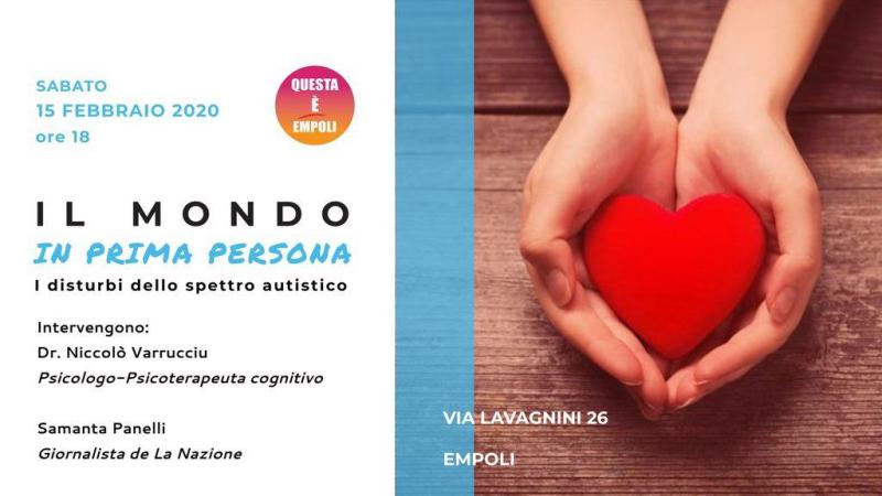 L’autismo, le sue forme e le sue criticità. Sarà questo il tema dell’evento “Il mondo in prima persona” promosso dall’associazione culturale Questa è Empoli. Quello di sabato 15 febbraio, sarà un incontro che andrà a toccare le molte sfaccettature e temi che si affacciano sull’argomento autismo, tema troppo spesso non dibattuto anche a causa della sua complessità. Per poter entrare nel vivo dell’argomento, sarà ospite dell’associazione il Dr. Niccolò Varrucciu, Psicologo-Psicoterapeuta Cognitivo esperto di Psicopatologia dei disturbi dello spettro autistico. Grazie a lui potremo infatti andare a scavare nell’iceberg che per molte persone è rappresentato dall’autismo.