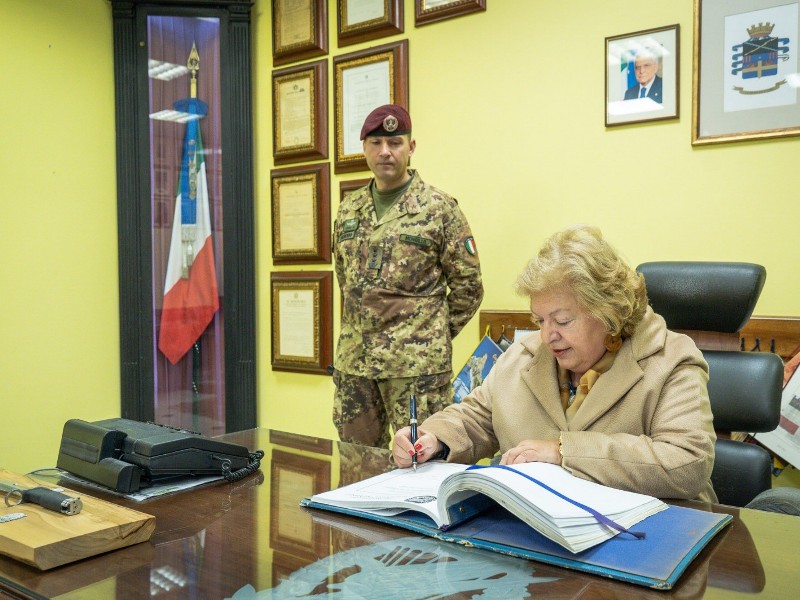 Successivamente Sua Eccellenza ha salutato la bandiera di guerra del 183° Reggimento Paracadutisti Nembo e firmato l’albo d’onore per poi concludere la cerimonia ricevendo gli onori finali.