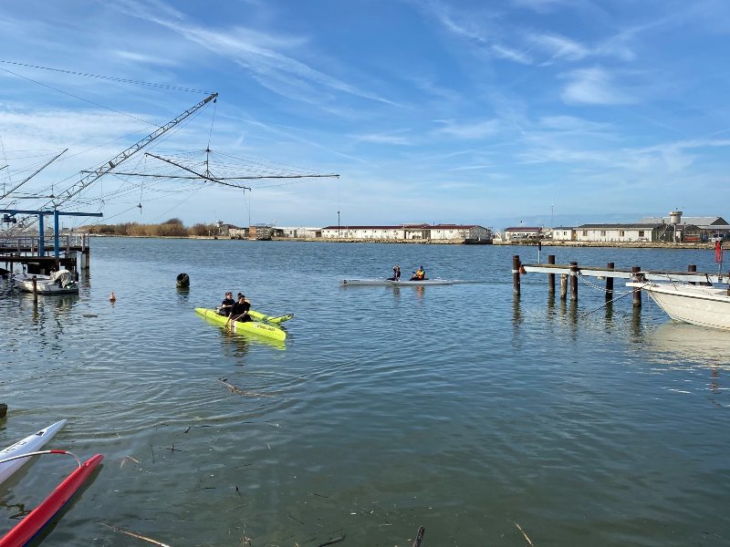 Giunti al mare, i diciotto ardimentosi pagatori sono stati accolti presso la Lega Navale di Pisa, che ha gentilmente offerto un prezioso e graditissimo aiuto logistico per lo sbarco. Oltre a questo, gli atleti della Canottieri Comunali hanno potuto usufruire degli spogliatoi e dell’ottimo pranzo a base di pesce.