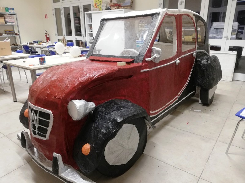 L'idea è nata quasi per scommessa, dalla grande passione per le auto di uno dei ragazzi disabili dell'Oda Farm Community, la “fattoria” dei disabili di Reggello. Detto, fatto: i ragazzi hanno realizzato un'auto d'epoca in cartapesta, di dimensioni reali. Ci hanno lavorato con impegno: per realizzarla e ultimare le decorazioni ci sono voluti molti mesi di lavoro e tante sessioni del laboratorio espressivo manipolativo dedicato alla cartapesta.