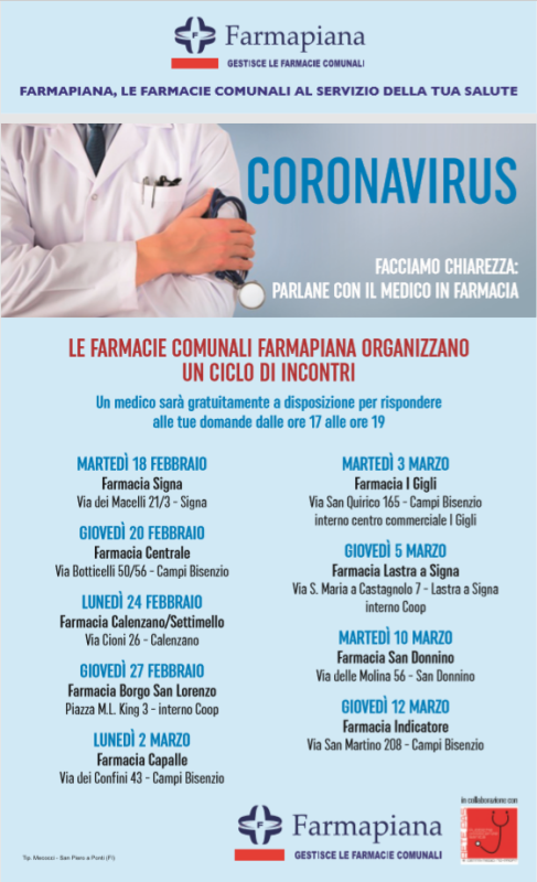 La Farmacia Comunale di San Donnino, nella nuova sede di via delle Molina 56 a Campi Bisenzio, sarà aperta dal lunedi al venerdi dalle 8.30 alle 19.30, il sabato effettuerà invece l’orario 8.30-13.