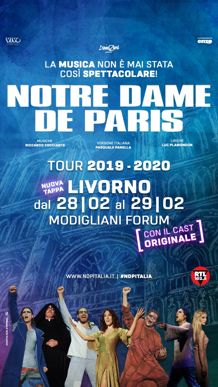 Dopo aver appassionato più di 4 milioni di spettatori solo in Italia, “Notre Dame de Paris”, uno tra i più apprezzati spettacoli teatrali mai realizzati, tratto dall’omonimo romanzo di Victor Hugo, torna a far sognare con nuove imperdibili tappe. Lo spettacolo farà tappa al Modigliani Forum di Livorno, il 28 e 29 febbraio 2020.