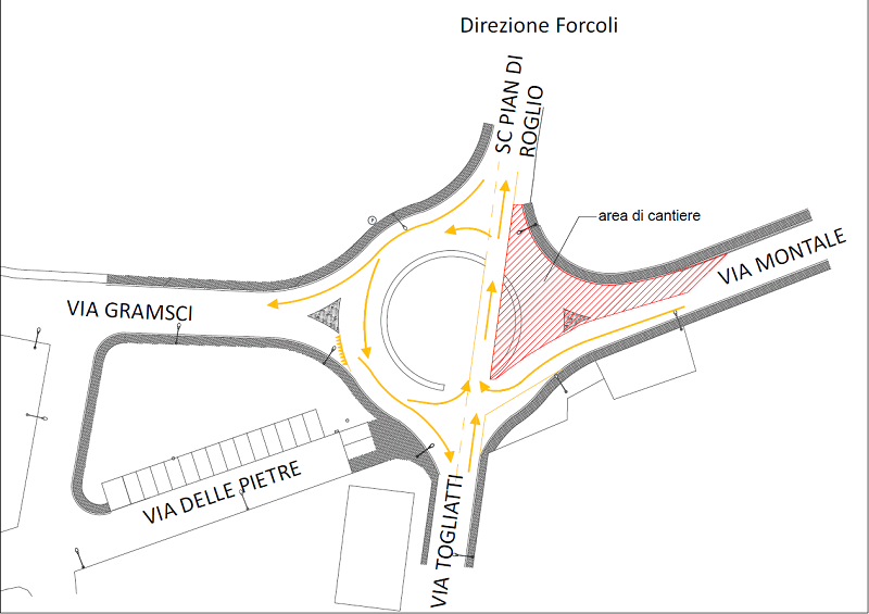 In particolare nell'ultimo tratto di Via Montale sarà istituito il senso unico in direzione Via Togliatti; l'accesso alle abitazioni poste nella “zona del Fontino” sarà da Via Fontino (strada di lato al Palazzo Comunale).