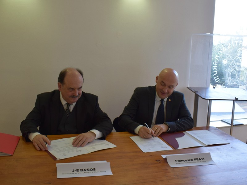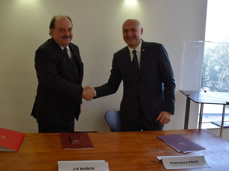 Dopo il viaggio della delegazione dell’Università di Siena in Catalogna, il rettore Francesco Frati ha accolto questa mattina al Santa Chiara Lab Josep-Eladi Baños, rettore dell’Ateneo di Vic, con il quale è stato sottoscritto un accordo quadro di cooperazione internazionale per progetti di ricerca e formazione nell'ambito delle scienze pedagogiche e scienze mediche, della formazione dei professionisti socio-sanitari e della multiculturalità. Responsabile dell’accordo per l'Università di Siena è il professor Carlo Orefice del Dipartimento di Scienze della formazione, scienze umane e della comunicazione interculturale con sede ad Arezzo, che già collabora con l’Università centrale della Catalogna in particolare per il progetto “Forward - Formazione, ricerca e sviluppo di strategie per supportare l’integrazione e prevenire la radicalizzazione islamica”, finanziato dal Ministero.