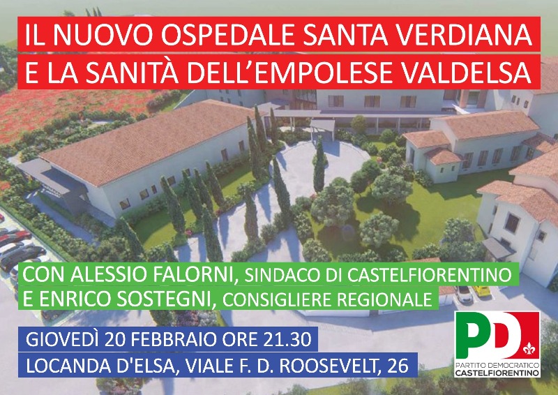 È così che Enrico Sostegni, consigliere regionale e membro della commissione sanità e politiche sociali, presenta l’iniziativa “Il nuovo ospedale di Santa Verdiana e la sanità dell’Empolese Valdelsa” organizzata dal partito democratico di Castelfiorentino per giovedì 20 febbraio alle 21.30 presso la Locanda d’Elsa.