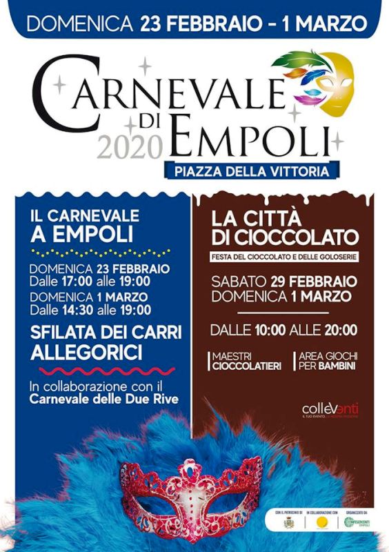 Due domeniche col Carnevale in centro a Empoli, che per un weekend diventa anche ‘Città di Cioccolato’.Nel prossimo fine settimana è in programma la prima uscita del “Carnevale di Empoli”: appuntamento domenica 23 febbraio 2020, dalle 17 alle 19, in Piazza della Vittoria.
