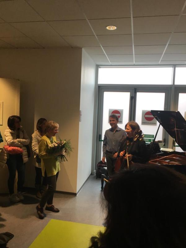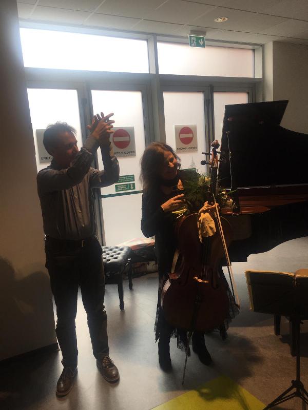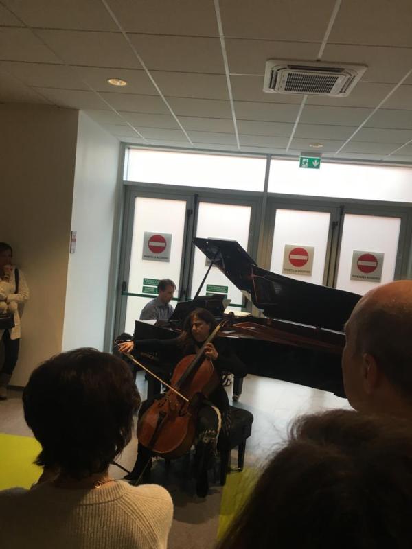 E infatti lo scopo del concerto di Maurizio Baglini, pianista, e della violoncellista Silvia Chiesa, due nomi della musica classica che vantano una grande carriera come solisti e dal 2006 formano un duo con oltre 250 concerti all'attivo, era proprio “donare musica”, nello spirito del progetto ormai avviato in ospedale da alcuni anni in collaborazione con la sezione pisana dei “Donatori di musica”, che prevede concerti a beneficio dei pazienti e degli operatori sanitari proprio per alleggerire il peso, a volte notevole, delle cure. L’esperienza emotiva e umana dell’ascolto della musica dal vivo è infatti un diritto di tutti. Proprio quest’idea anima il progetto dell’associazione, una rete di musicisti, medici e volontari, nata nel 2009 per realizzare stagioni di concerti negli ospedali e che a Pisa è riuscita a raccogliere fondi, durante il primo concerto del maestro Baglini al teatro Verdi nel maggio del 2016, per acquistare il pianoforte in dotazione nella sala appositamente allestita al piano terra del Centro Senologico (Edificio 6) al Santa Chiara.