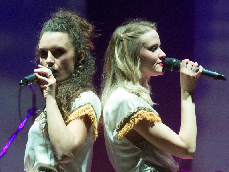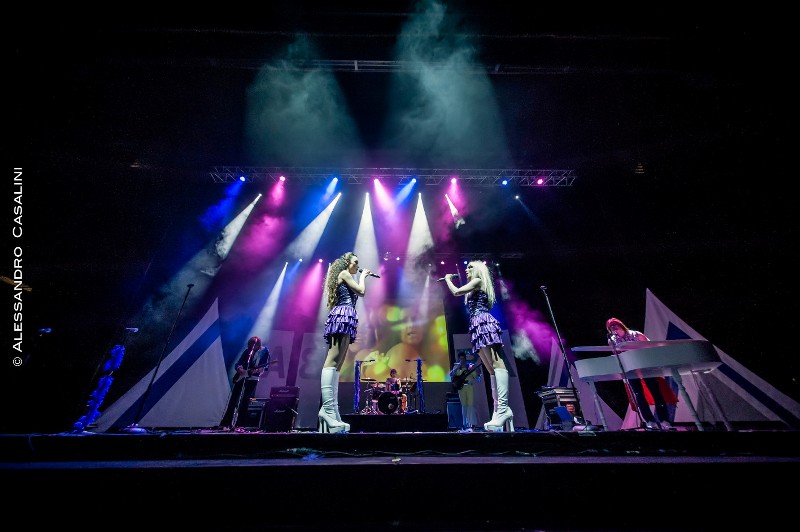 Le canzoni sono eseguite dal vivo da una band che supporta le due voci femminili. E poi, cambi di abito, luci, video, coreografie: uno spettacolo rigorosamente in stile Abba.