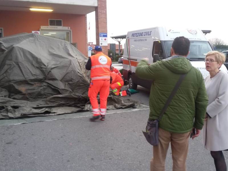 È arrivata all’ospedale di Cisanello la tenda gonfiabile fornita dal Dipartimento della Protezione civile per effettuare il filtro pre-triage davanti all’ingresso del Dea-Dipartimento di emergenza-accettazione per l’emergenza Covid-19.
