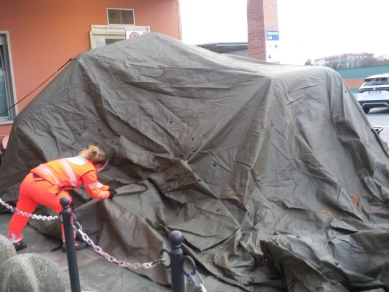 Il personale sta effettuando il montaggio in queste ore dopodiché, una volta allestita completamente e dotata degli arredi necessari, si provvederà a convogliare in essa i pazienti a piedi diretti al Pronto soccorso (eccetto le ambulanze, che transitano sotto la camera calda).