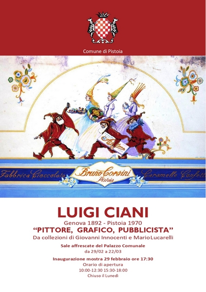 Nelle sale Affrescate del Palazzo comunale, in piazza del Duomo, sabato 29 febbraio, alle 17.30, si terrà l'inaugurazione della mostra sul “Pittore, grafico, pubblicista” Luigi Ciani (Genova 1892 – Pistoia 1970), con opere tratte dalle collezioni di Giovanni Innocenti e Mario Lucarelli.