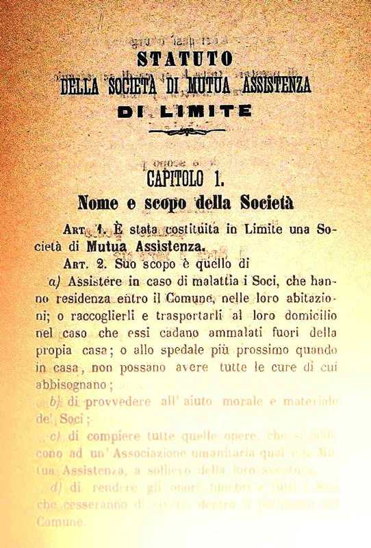 Ritrovato il primo statuto, datato 1892, della Pubblica Assistenza Croce d'Oro di Limite sull'Arno. Un prezioso documento che si riteneva perduto, firmato dal primo presidente dell'associazione Emilio Bartolini, nel quale si evidenzia l'organizzazione ed i compiti dell'allora neonata Società di Mutua Assistenza di Limite fondata nel 1891. Nel prossimo anno ricorrerà quindi il 130esimo “compleanno” dell’Associazione - una tra le più antiche tuttora operanti in Italia - ed in occasione di questa importante ricorrenza saranno presentati oltre al primo statuto anche ulteriori fondamentali documenti che confluiranno in un libro da proporre alla collettività. Si ripercorrerà così tutta la storia della Pubblica Assistenza di Limite sull'Arno, dall'anno della fondazione fino ai primi decenni del 1900, superando anche periodo buio della repressione fascista, fino alla ripresa delle attività nel 1944 e al costante sviluppo dell’organizzazione di volontariato che tuttora opera a beneficio della popolazione di Capraia e Limite e di tutto il circondario.