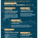 Continuano i “festeggiamenti” per il decennale di La conchiglia di Santiago, ancora con una serie di iniziative, spettacoli, presentazioni di libri, mostre. Ecco qui di seguito la stagione di primavera 2020 al Circolo Cheli di San Miniato, cinque interessantissime presentazioni, con le migliori forze culturali e artistiche non solo della zona, ma anche provenienti dal resto dell’Italia. Tra l’altro con la presenza di un bravo attore come Alberto Rossi, da vent’anni protagonista di “Un posto al sole”, che verrà a confermare le sue origini sanminiatesi: pronipote dell’autore del libro edito da La conchiglia di Santiago, Cornelio Rossi che era nato nella città della Rocca a fine 800.