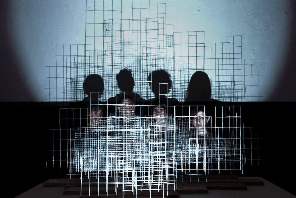 Maze- Il labirinto è una live performance nella quale le ombre di sculture e corpi tridimensionali sono proiettate dal vivo su un grande schermo.
